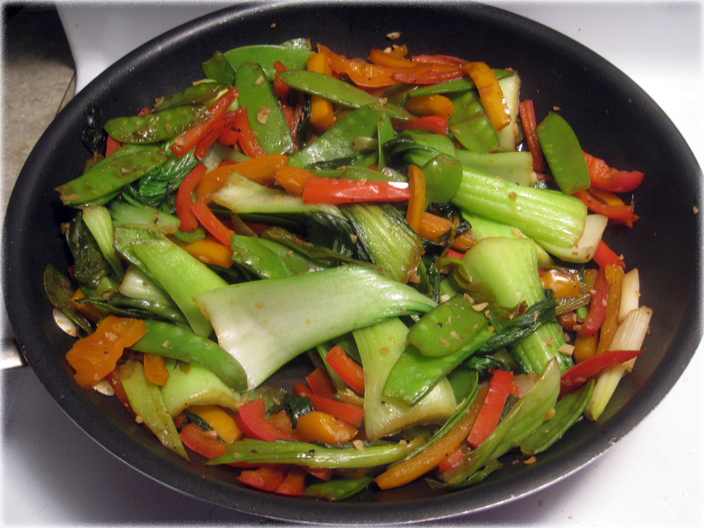 - 4 – 5 cups roughly chopped Shanghai Bok Choi (about 100 cal.)