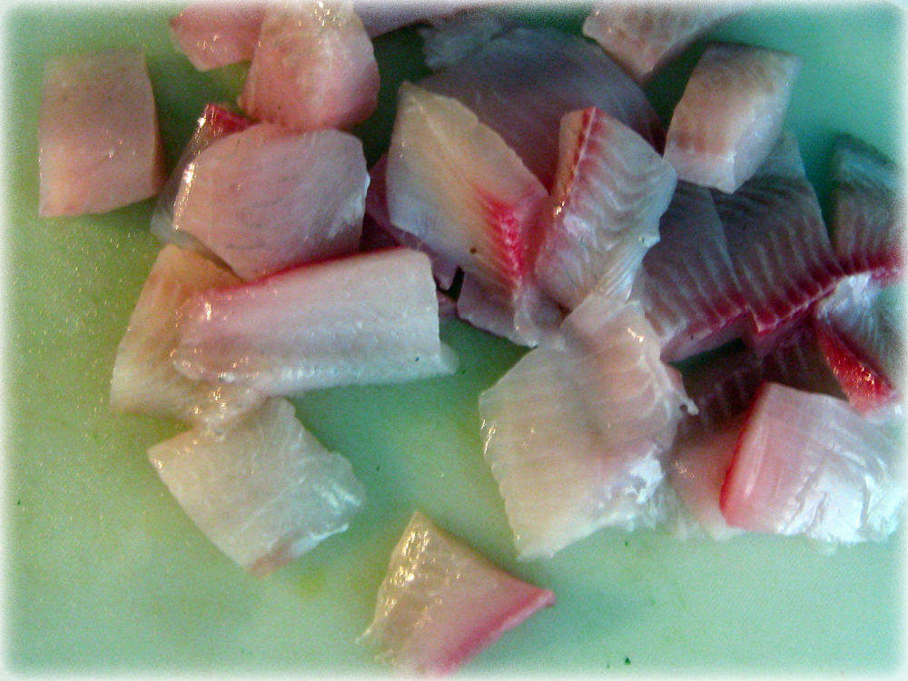- Rinse the fish fillets and cut them into 2-inch pieces.