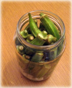 Please note: This is NOT a true canning process recipe, so the okra must be refrigerated. You can make this recipe using a true canning process that includes boiling the jars, lids, utensils etc., but I have not done that here, so always refrigerate.