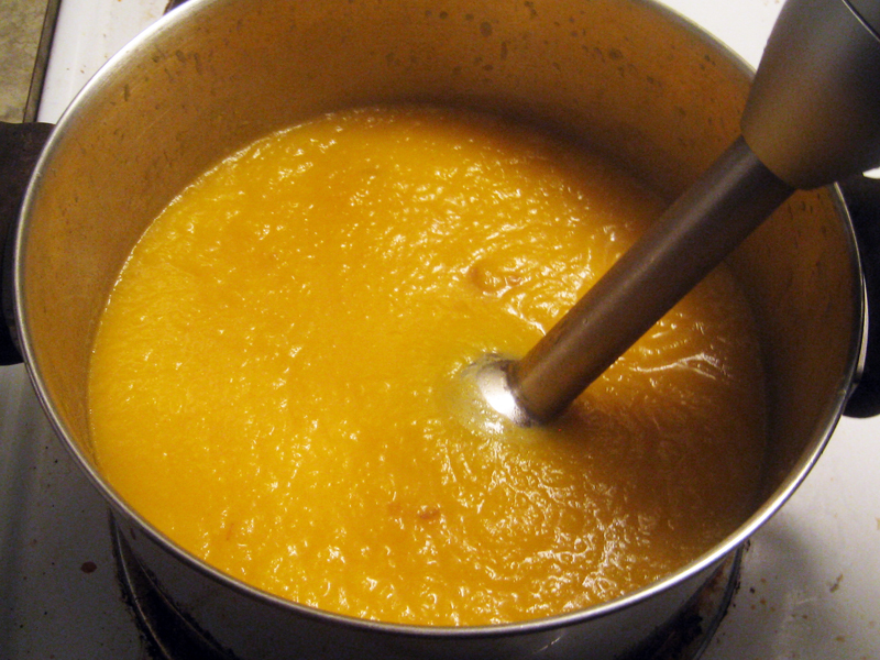 Note: If you don’t have a hand blender, then put the squash pieces into a food processor and blend them until well pureed before returning the squash to the soup.
