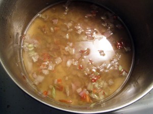 - After mixing the shallots add 2 cups of chicken broth to de-glaze the bottom of the pot.