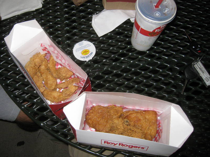 Essentially, immediately after having a Doritos Locos Taco from Taco Bell, we went to Roy Rogers. Again, another mistake. It was basically closing time and the staff were reluctant to make us any food. Knowing that it’s a pain to serve customers just before closing, my friend and I just ordered the pre-made fried chicken sitting under the warming lights. Another customer behind us, ordered a hamburger, which the staff clearly didn’t want to make. Somehow though, our pre-made food came out after the guy’s freshly made burger. That was irritating. Adding to the irritation was that in our attempt to secure some BBQ sauce using one of the manual pumps by the soda fountain, my friend managed to cause the thing to explode all over me. He escaped unscathed. The real insult added to the injury though was that the sauce was sweet and sour sauce incorrectly labeled as BBQ sauce. The last disappointment was the food, which we ate outside in consideration of the inconsiderate staff. It wasn’t very good at all and my friend swore off ever returning to Roy Rogers right there in the parking lot.