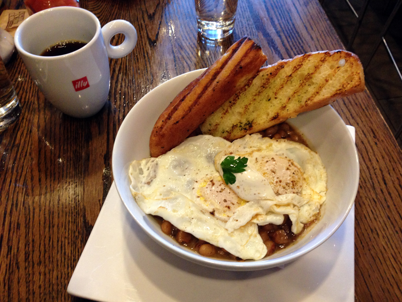 It was highly recommended that I order the Cassoulet, which consisted of pork, beans, two eggs, and two pieces of grilled, buttery bread. They served the the meal in a bowl, so it looked fantastic (see below), smelled great, and had a surprising taste from what you might expect, but in the best way. The white beans (at least I think they were white beans) had a bunch of savory and sweet spices that I couldn’t quite place that sort of created a “gravy” that the beans lounged in. I ordered my eggs over easy because I thought they would mix well with the beans that way and the eggs came with a dollop of what was probably creme fraiche. The grilled bread was excellent and possibly one of my favorite parts of the dish. It had a nice crunch, but was also soft inside. The sort of stick shape made it great for dipping into the food. The only drawback I saw with my meal was that I expected the pork to actually consist of larger chunks of pork. Instead, the pieces of pork, which admittedly did add a lot of flavor, were little tiny pieces about the size of the beans. The description on the menu was a little misleading because a it said something like pork with beans, but this was more like really good “pork-and-beans” you would make while camping. Also, a cassoulet by the French definition seems to traditionally have larger pieces of meat in it, so I’m not sure that was the right name to use (although in Nick’s defense, any slow cooked bean casserole with some meat seems to loosely qualify as a cassoulet by American standards). Despite this though, I couldn’t finish my bowl and I mean that in a good way. It was a hearty, filling, and very tasty meal, which felt like breakfast, but could also pass for a hearty lunch (or brunch). I would recommend trying this dish for something a little different than usual breakfast/brunch fare, but that still hits the spot.
