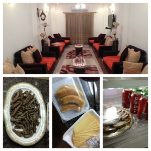 Khartoum, Sudan – Arrival. After a 9-hour flight to Germany, a 6-hour weather delay in Germany after boarding, a re-directed flight path to stop in Ethiopia (due to Flight Attendant Unions), and an overall 27-hour Lufthansa nightmare, we finally arrived in Sudan at 2AM. My mother, brother, and I were extremely well taken care of by our family on this trip. The picture above is the living room of an apartment that my uncle owns, which he had furnished for our stay. My cousin (his son) picked out a lot of the more contemporary/modern furniture himself. In the bottom left is a picture of some Soujouk (Sudanese) or Segook (Egyptian), depending on your dialect. It’s a spicy beef sausage fried in a pan. This was some of the best I’ve had. It might not look pretty, but the first night in the apartment, we ate half of it. To the right of the soujouk is some hard Romano cheese and cheese filled mini-croissants that our family left for us in the fridge. On the far right is a plate of sliced beef round next to cans of Coke with Arabic writing.