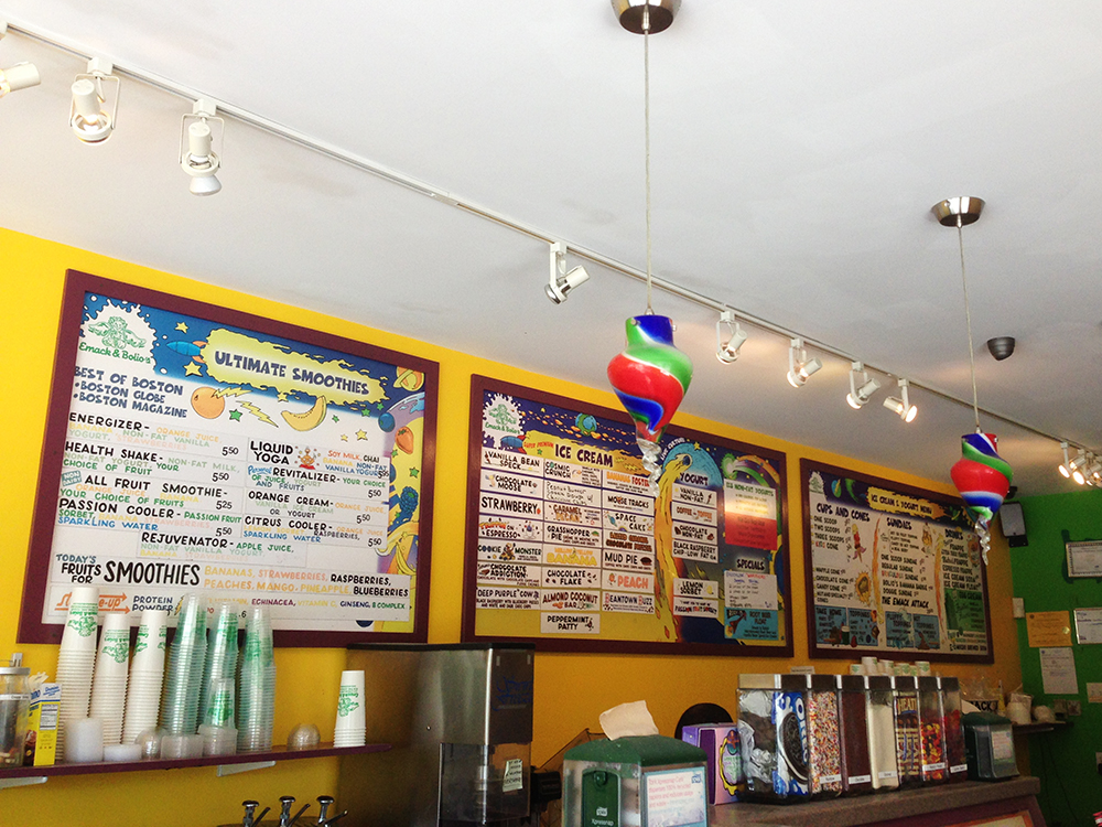 When you walk into any Emack & Bolio’s you’ll immediately find a quirky interior filled with psychedelic colors, cartoons, and child-like displays. The main reasons for this image stem from the shop’s roots as starting during the height of classic rock and hippies in the 1970’s. One especially fun fact that hits close to home is that the founder of Emack & Bolio’s, Bob Rook was a music lawyer. He started the shop as an after-hours location for musicians to satisfy their munchies with homemade ice cream when the clubs closed.