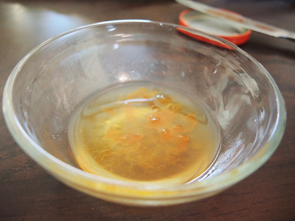 3. After assembling the cookies, you can now decide if and how you want to decorate them. In a small bowl, place a teaspoon of apricot jelly and add in one or two teaspoons of water (you may need more water). Mix well until the apricot jelly has essentially dissolved in the water. You’ll use this mixture to stick on your decorations. Man Fuel Food Blog - Aprocot Simple Syrup