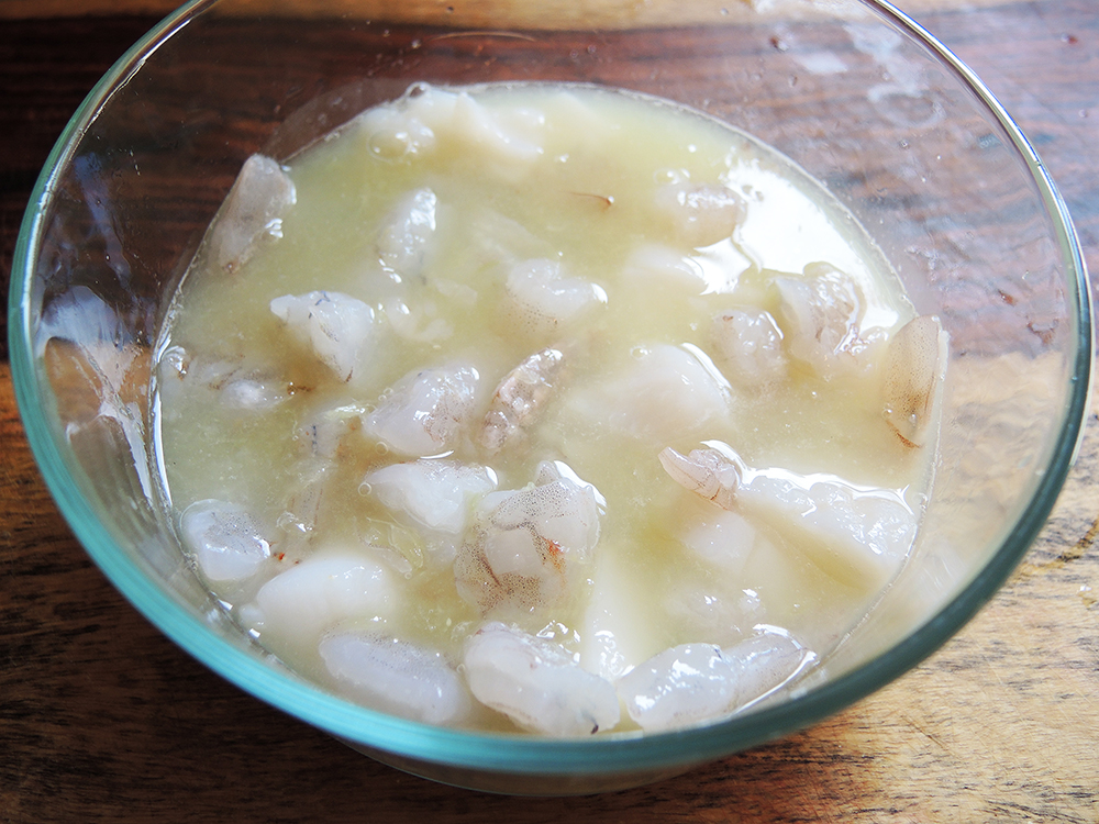 - After 4-6 hours have passed, the seafood should be cooked due to the acid from the lime juice. Check the seafood to make sure that all of the pieces are no longer semi-translucent and are essentially white.