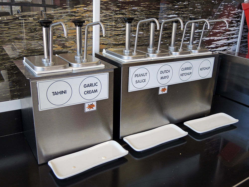 Man Fuel - Food Blog - Amsterdam Falafel Shop - Boston, MA - Dutch FriesOne fun addition to getting the fries is trying all of the condiments at the restaurant that you can use for the fries. They have plain ketchup, curried ketchup, garlic cream, dutch mayo, tahini, and peanut sauce.
