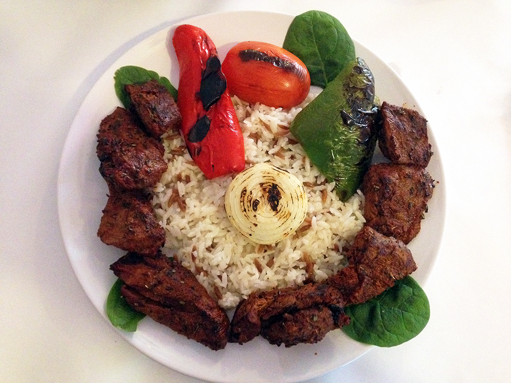 Filet Mignon Kabob – At first glance, it sounds like sacrilege to cut up a filet mignon into a kebab, but honestly it works. Filet Mignon is the most tender beef cut, but it is not especially flavorful. The tender meat on a kabob gets nicely charred and the spices add flavor. Again, the kabobs are cooked throughout and there is a strong presence of oregano in the spices, but I thought it gave the dish a Greek inspiration that worked well. I enjoyed the large pieces of meat which went exceptionally well with the awesome rice that comes with the dish.