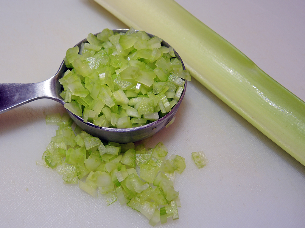 6. While the lobsters cool, dice up a quarter stalk of celery to get 1 teaspoon or up to 1 tablespoon of diced celery. You can add as much or as little as you want, but the celery is more for texture and less about real flavor. You just want enough celery to accent the lobster and not look too prominent.