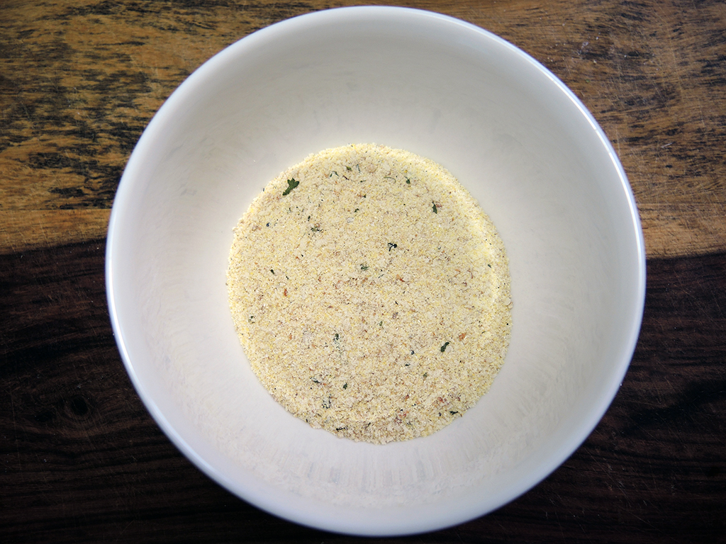 Note: The cornmeal adds crunch and crispy texture, but if you don’t have it, then just double up on the breadcrumbs.