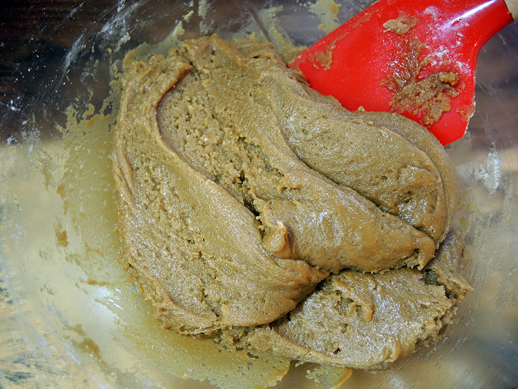 - Mix in the 3/4 cup of dark brown sugar into the butter until thoroughly incorporated.