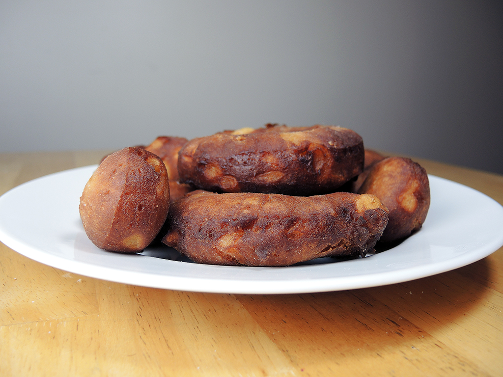 16. When the donuts are hot right from the fryer, they taste a bit like carnival Doughboys. When they cool, they start tasking more like typical doughnuts, and by the next day, they start to taste like cake-y or old-fashioned doughnuts. All three of those phases are absolutely delicious. After that, they start to lose their freshness, so keep them in an airtight container. Man Fuel Food Blog - Apple Cider DonutsMan Fuel Food Blog - Apple Cider Doughnuts