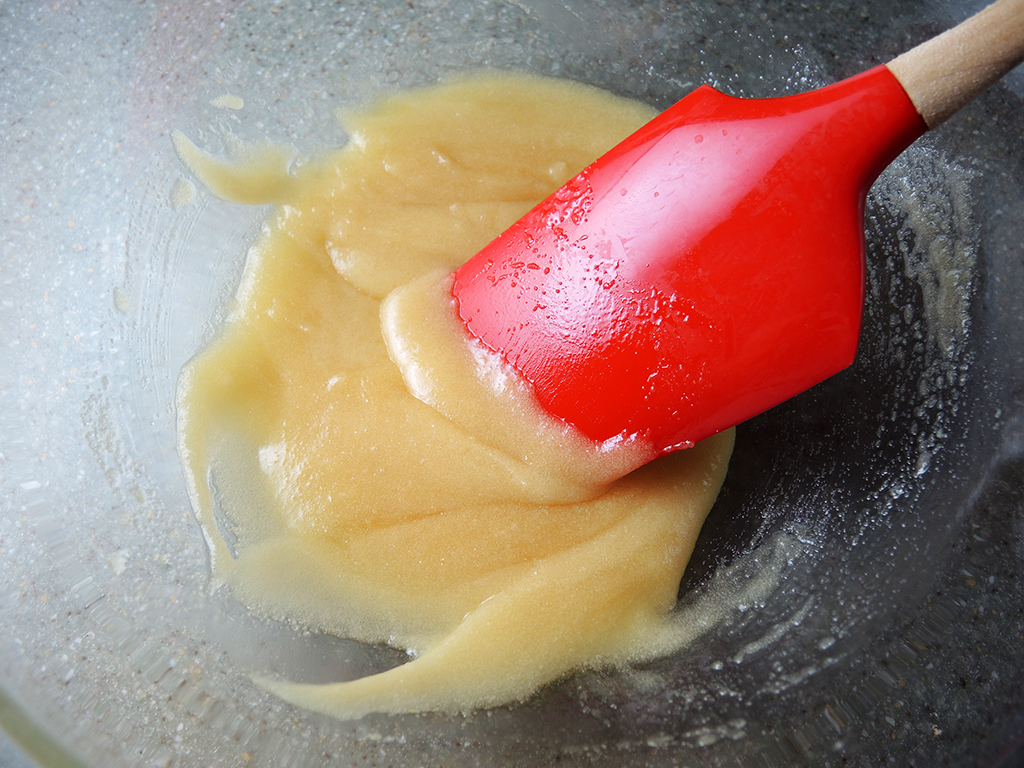6. Add in the 1/2 cup of sugar and mix everything very well. Man Fuel Food Blog - Sugar Mixed with Melted Butter