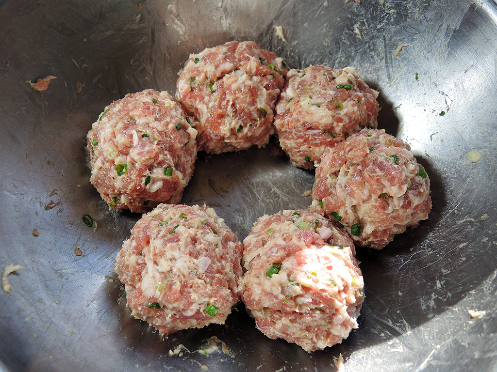 7. Divide up the sausage into 6 equal balls. Man Fuel Food Blog - Scotch Egg Sausage Portioned Out