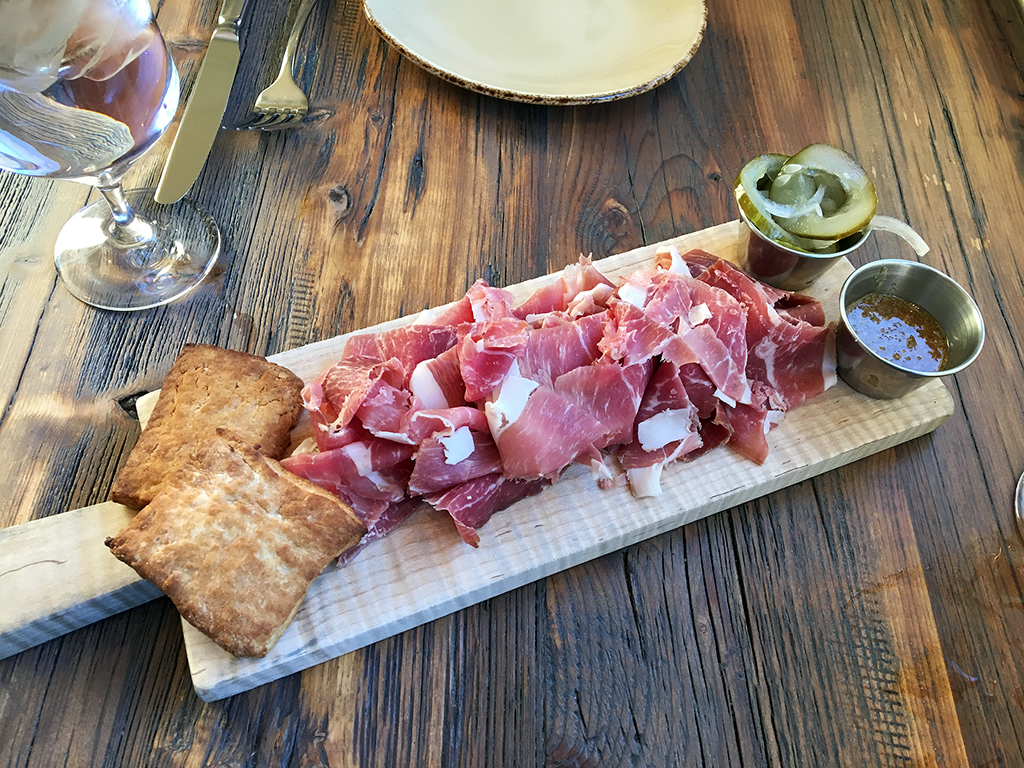 Prosciutto Board – As an appetizer, we ordered the prosciutto board that comes with two biscuits, sweet mustard, and some pickled vegetables. Most places skimp on their meat or cheese boards and we were ready to receive a small sampling of the items. Instead, our server brought us a mountain of freshly sliced prosciutto and two nicely sized biscuits. We couldn’t believe our eyes. The prosciutto was mild in flavor, not too salty, and paired wonderfully with the mustard as well as the biscuits. The pickled vegetables provided an acidic balance to the fatty meat, but they were perhaps a bit on the vinegary side for me. I would definitely recommend this generous appetizer that we couldn’t finish even though we tried.