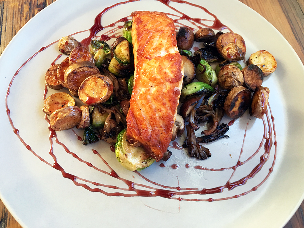 Salmon – My wife ordered the pan seared salmon. I’ve said it before, but I’m not a fan of cooked salmon. It just doesn’t do it for me. Nonetheless, I thought this salmon was cooked wonderfully with a nice sear on the outside and a fresh flavor that wasn’t too fishy like a lot of ill-prepared salmon at some places. With that said, the real stars of this beautiful dish in my opinion were the vegetables! The roasted potatoes and mushrooms were absolutely fantastic. They seemed simply prepared, but the flavors really jumped out.