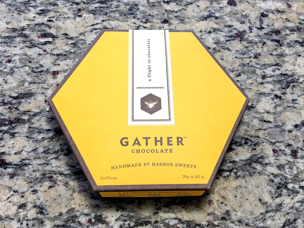 Prior to their release on September 6, 2016, I had the opportunity to try a free sample of Gather Chocolate by Harbor Sweets, which makes handcrafted artisan chocolates. Even though this was my first taste of Gather Chocolate, I found it hard to believe that such beautifully crafted chocolates are handmade. In addition to making a spectacular set of chocolates, Gather is Harbor Sweets’ “mission-driven” line where 2.5% of the profits from each sale are donated to the “Pollinator Partnership.” The goal is to help in the plight of the honeybees, which have seen a drastic decline over the years. The Pollinator Partnership is an organization that educates and advocates best practices for honeybee protection.