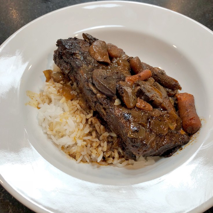 When made in the slow cooker, braised short ribs take on a somewhat beef stew character making them a classic comfort food dish. Sometimes slow cooking meat can result in a mushy unappetizing texture, but tougher cuts like short ribs with their natural fattiness hold up wonderfully to slow cooking. The mushrooms in this recipe add an umami flavor that rounds out the dish while the carrots add a touch of sweetness. The red wine sort of classes up the short ribs by adding a French/Italian influence that really deepens all of the natural flavors with its earthy fruit sweetness. Meanwhile the tomato paste works in some natural acidity to help break up some of that rich fattiness.